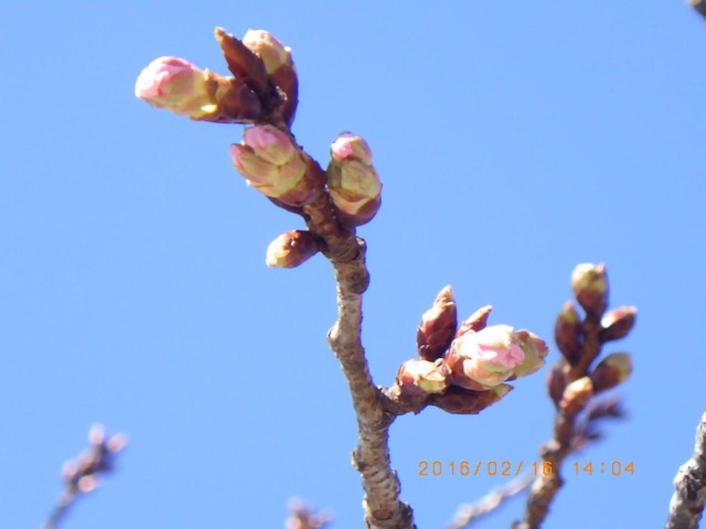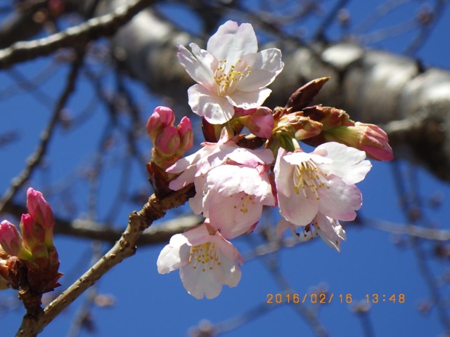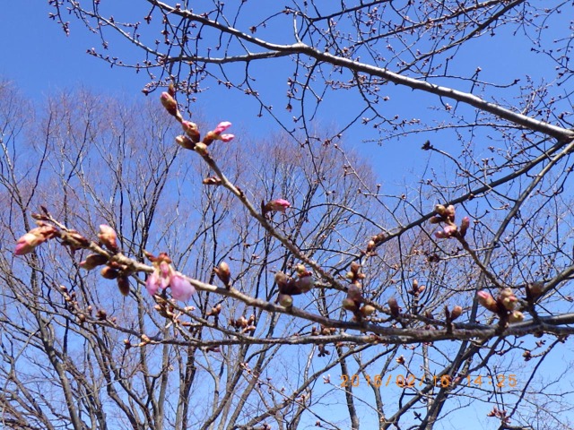 2月も半ばを過ぎ、ようやく春の足音が近づく季節となり、徳島市の公園では、蜂須賀桜の花が咲き始めています。