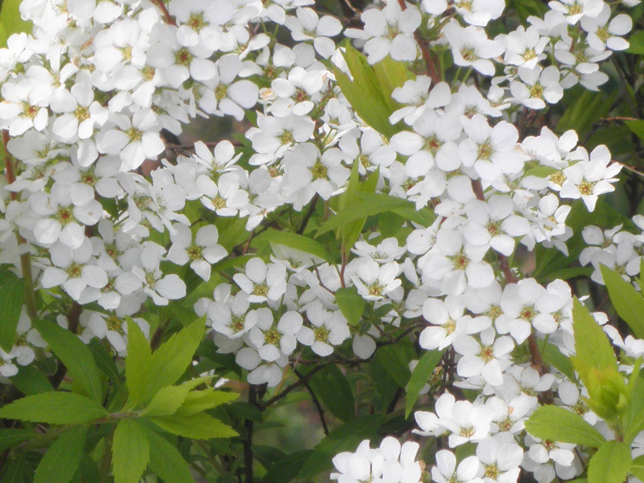 現在、徳島市の眉山公園、助任緑地で雪の様な白くて小さい花が優しげに咲いています。