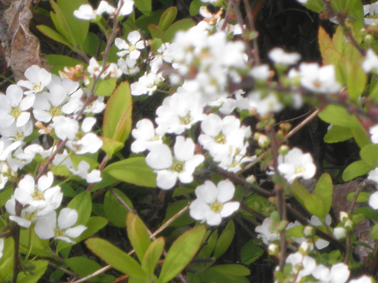 桜の開花が始まっておりますが、一足早くユキヤナギが細長い枝で緩やかなカーブを描きながら、白い花を咲かせています。ユキヤナギの花は雪が積もったように見え、花が散ったあとの地面も雪がパラパラと積もったように、優しげな雰囲気をつくり出します。ユキヤナギや桜、チューリップなどの花が咲くと、春を迎えたような気分になります。