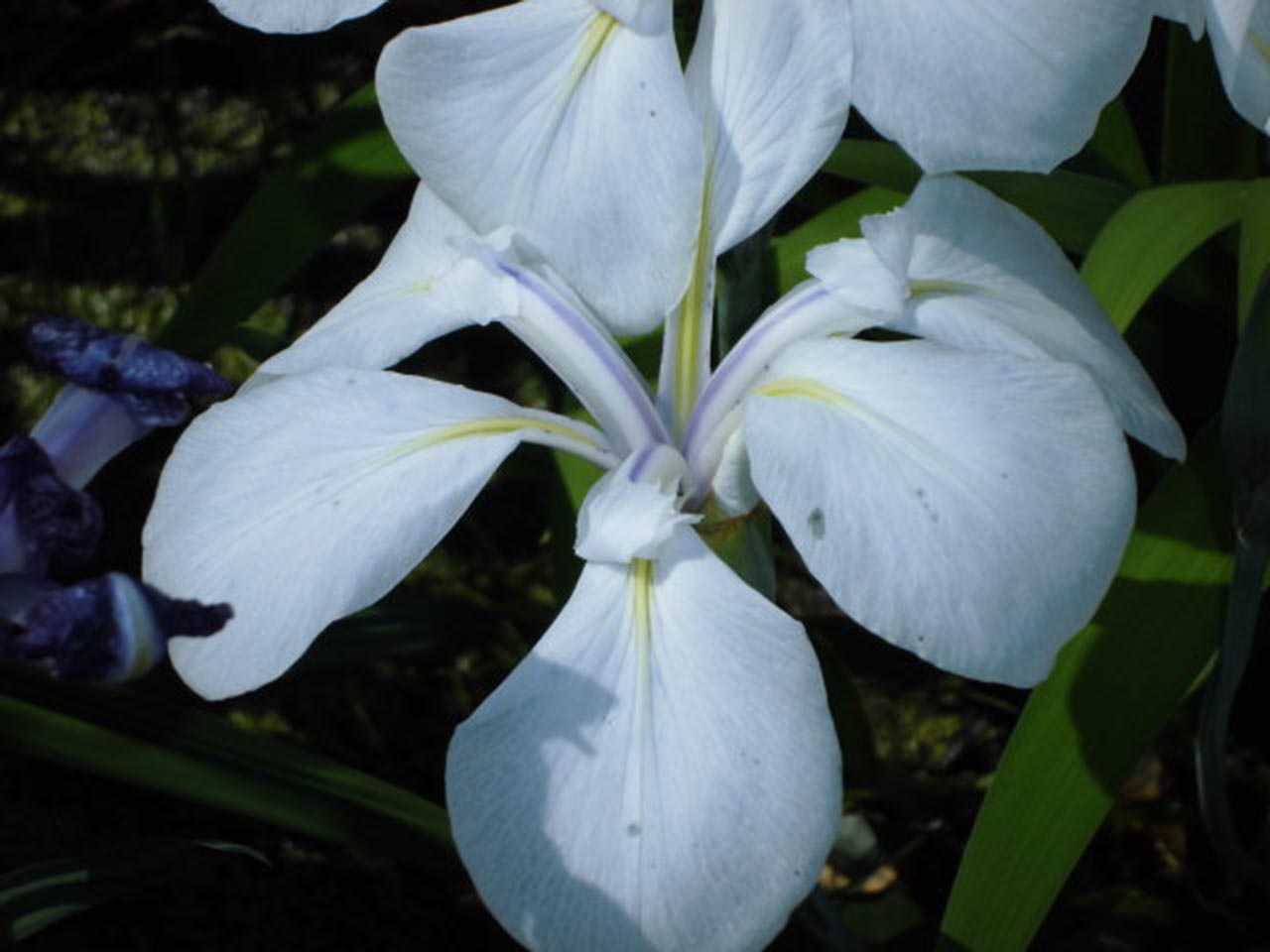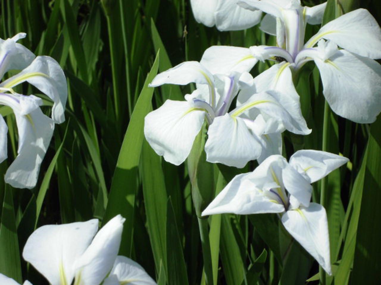 心地よい春の陽気な季節になりました。深い青紫色と白色のカキツバタの花が、水辺に美しく咲いています。カキツバタは水生で、池や沼地など常に水のあるところを好み、花弁には中央部に白い筋模様があります。