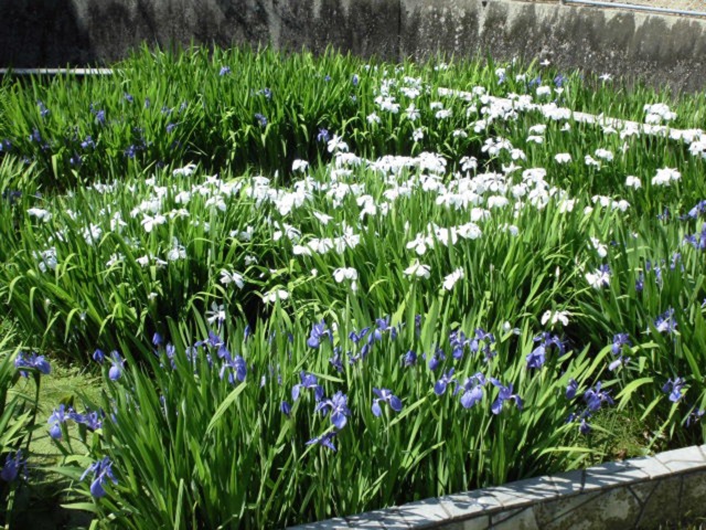 現在、一宮公園で青紫色と白色のカキツバタの花が見頃を迎えています。