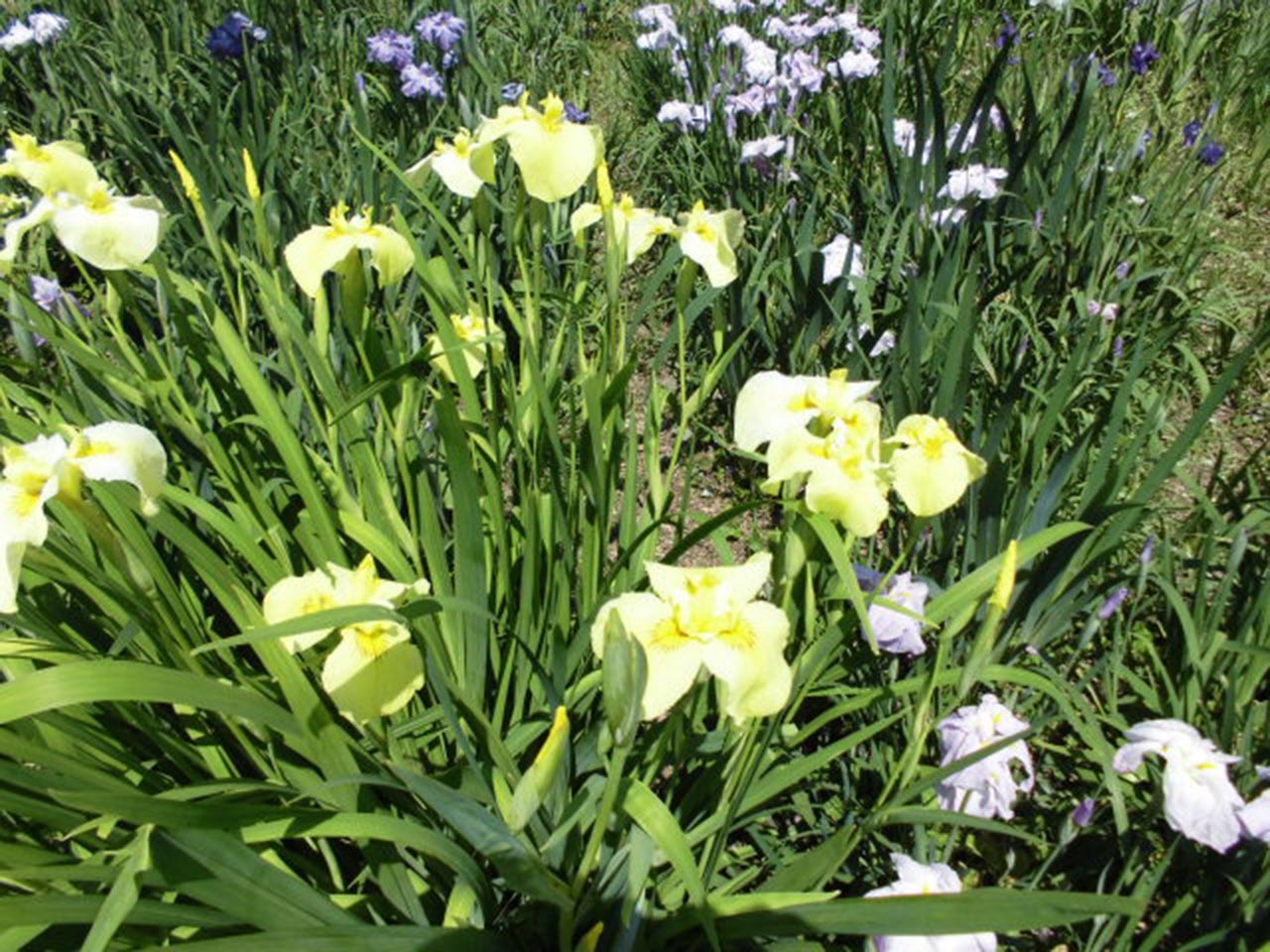 初夏のさわやかな風に揺られながら、夏の香りを水辺に運ぶハナショウブの花が咲いています。ハナショウブの花は、優美な花の形としっとりとした風情が魅力で、花の色は、白、桃、紫、青、黄色など多数あります。