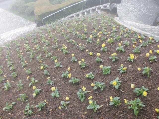 マチ★アソビ「クライマックスラン」に合わせ、眉山公園の斜面花壇にマリーゴールド、ナデシコ、パンジーの三種類合わせて2000ポット植えております。眉山公園にお越しの際には、見頃の花をご覧ください。