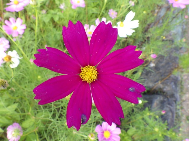 花言葉は「乙女の真心、乙女の愛情」などで、ピンク色のコスモスは「少女の純潔」、赤いコスモスは「調和」、白いコスモスは「美麗、優美」になります。