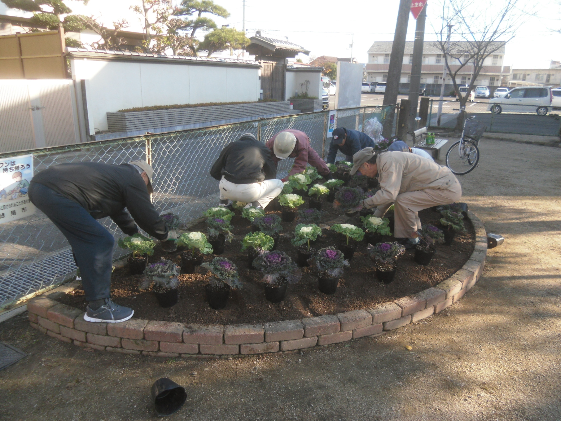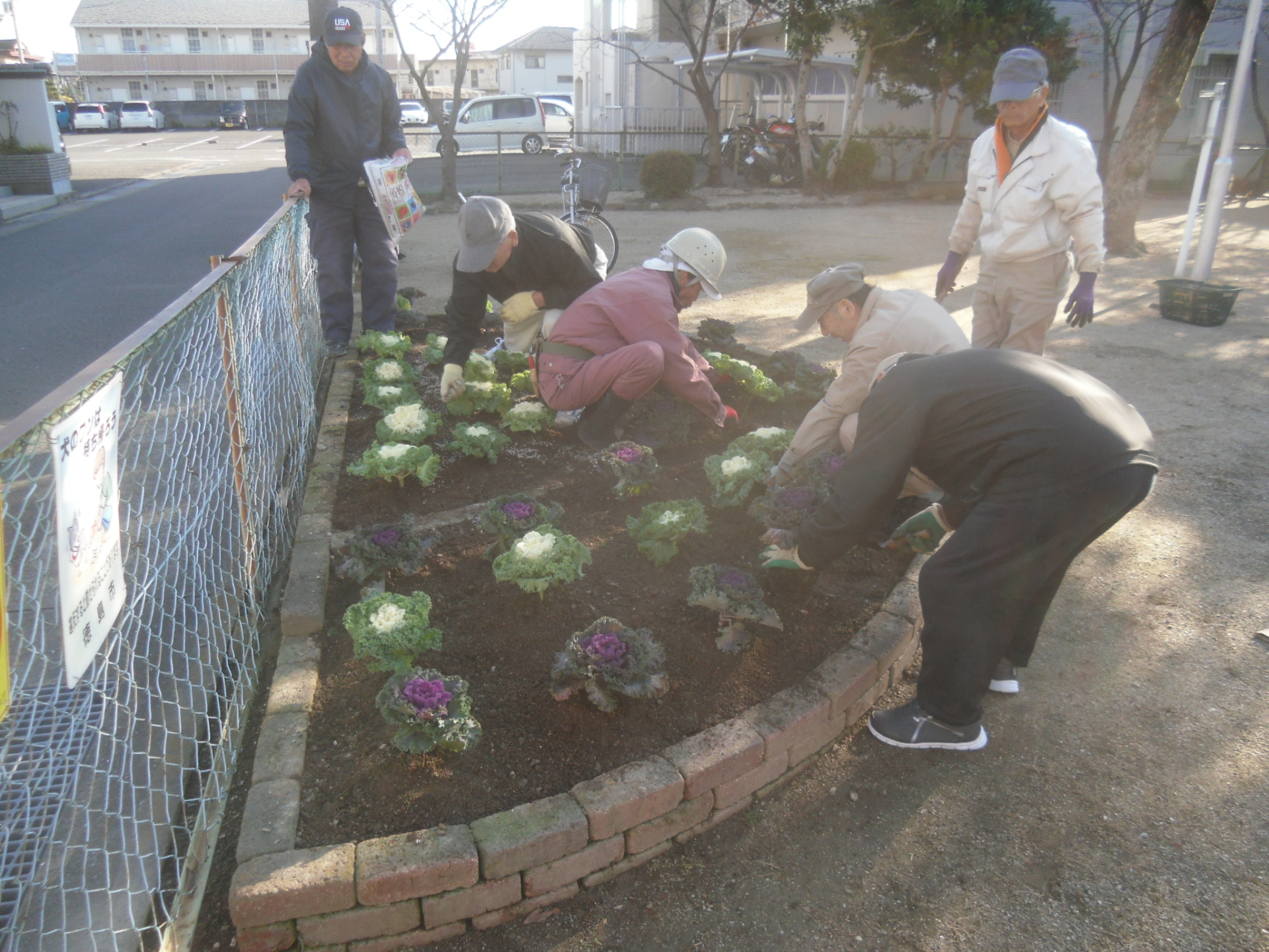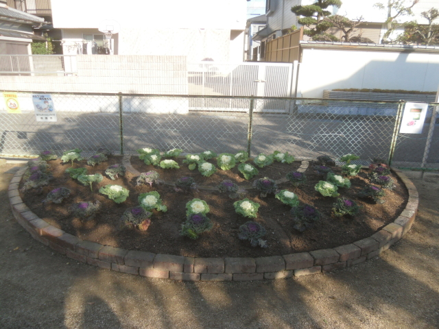 師走、何かと気ぜわしいこの頃、街中ではポインセチアが美しい紅色を見せる季節となりました。12月3日、庄町南公園において、光陽台町内会の皆様と一緒に冬に欠かせない紅白のハボタンを植栽しました。