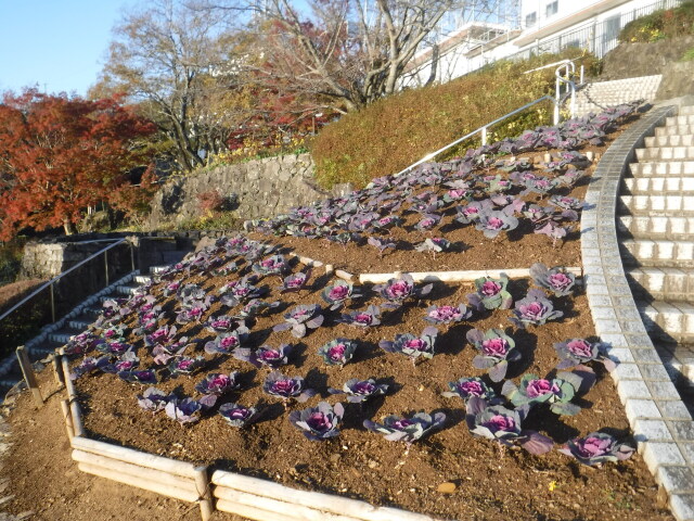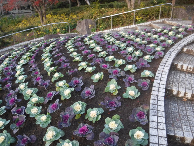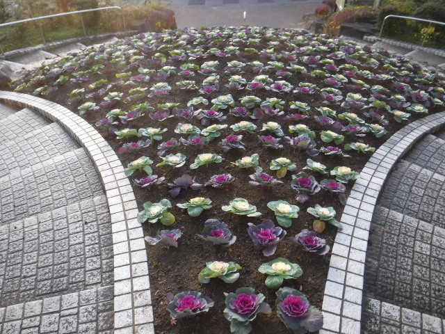 きらびやかなイルミネーションが街を彩っていますが、眉山公園の葉ボタンも大きく生長し花のカスケードいっぱいに彩ることを期待しています。