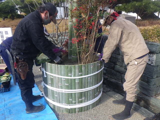 新しい年は、徳島が活気づき話題性のある徳島になることを思い、公社職員一同で丹精を込めて門松を作製しましたので、徳島中央公園にお越しの際にはぜひ門松をご覧下さい。