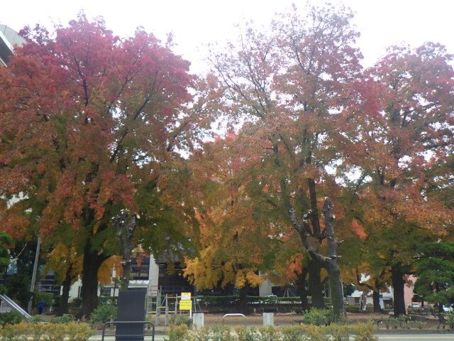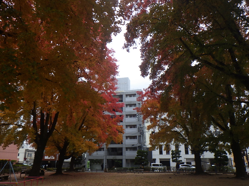 寒さが厳しくなりましたが、徳島市役所西側の幸町公園でも7本のタイワンフウの葉っぱが黄色と紅葉が入り混じりグラデーションに色付いていますのでご覧下さい。