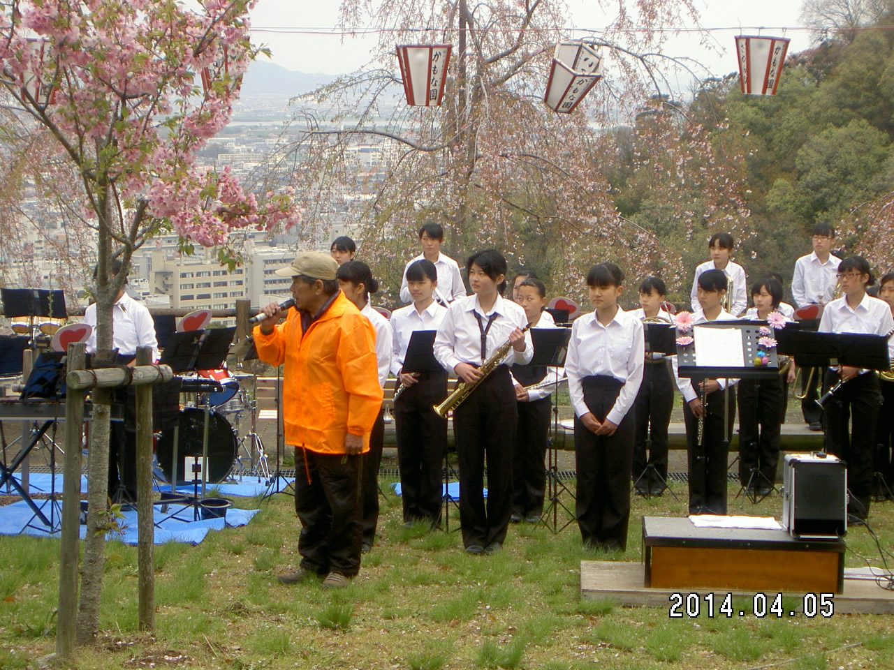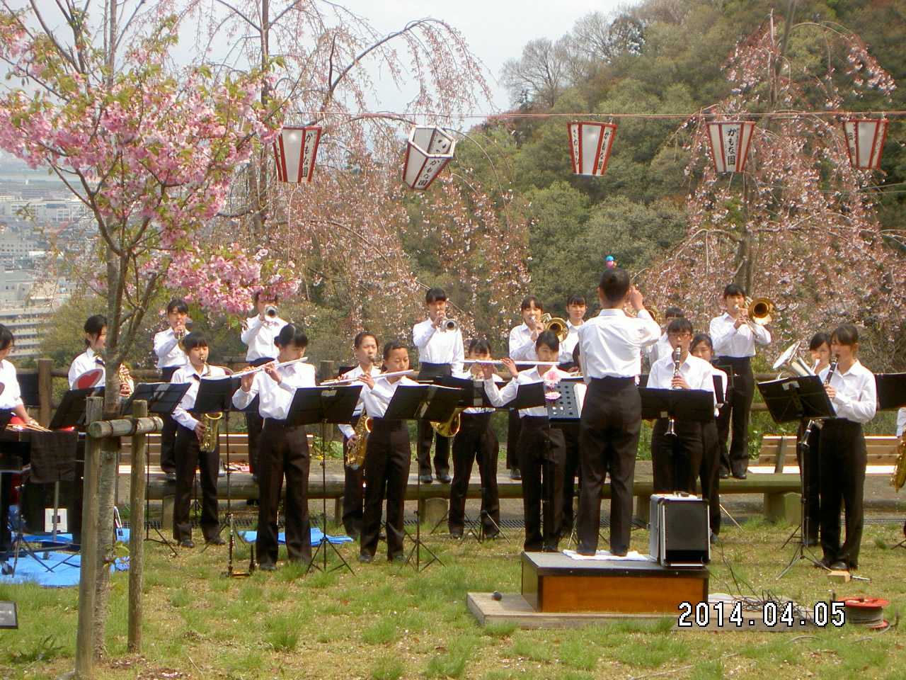 「日本の桜名所百選」に選ばれている西部公園で4月5日(土)10時30分より約550本のソメイヨシノの下で、加茂名中学校吹奏楽部25名の部員による弟5回春らんまんコンサートが開催されました。