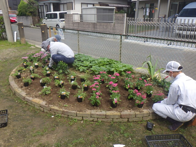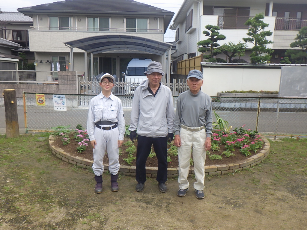 青田をわたる風もさわやかな頃となり、6月25日(火)庄町南公園の花を「光陽台町内会」の皆様と一緒に、ペンタス、ポーチュラカの花に植え替えました。ペンタスの花は、暑さにも強く途切れることなく花をさかせる植物で、ペンタスの花言葉は「希望が叶う」、「願い事」です。また、ポーチュラカの花は、暑さや乾燥に非常に強い植物で、日当たりの悪い場所や天候のよくない日は花は咲きません。ポーチュラカの花言葉は、「いつも元気」、「無邪気」です。