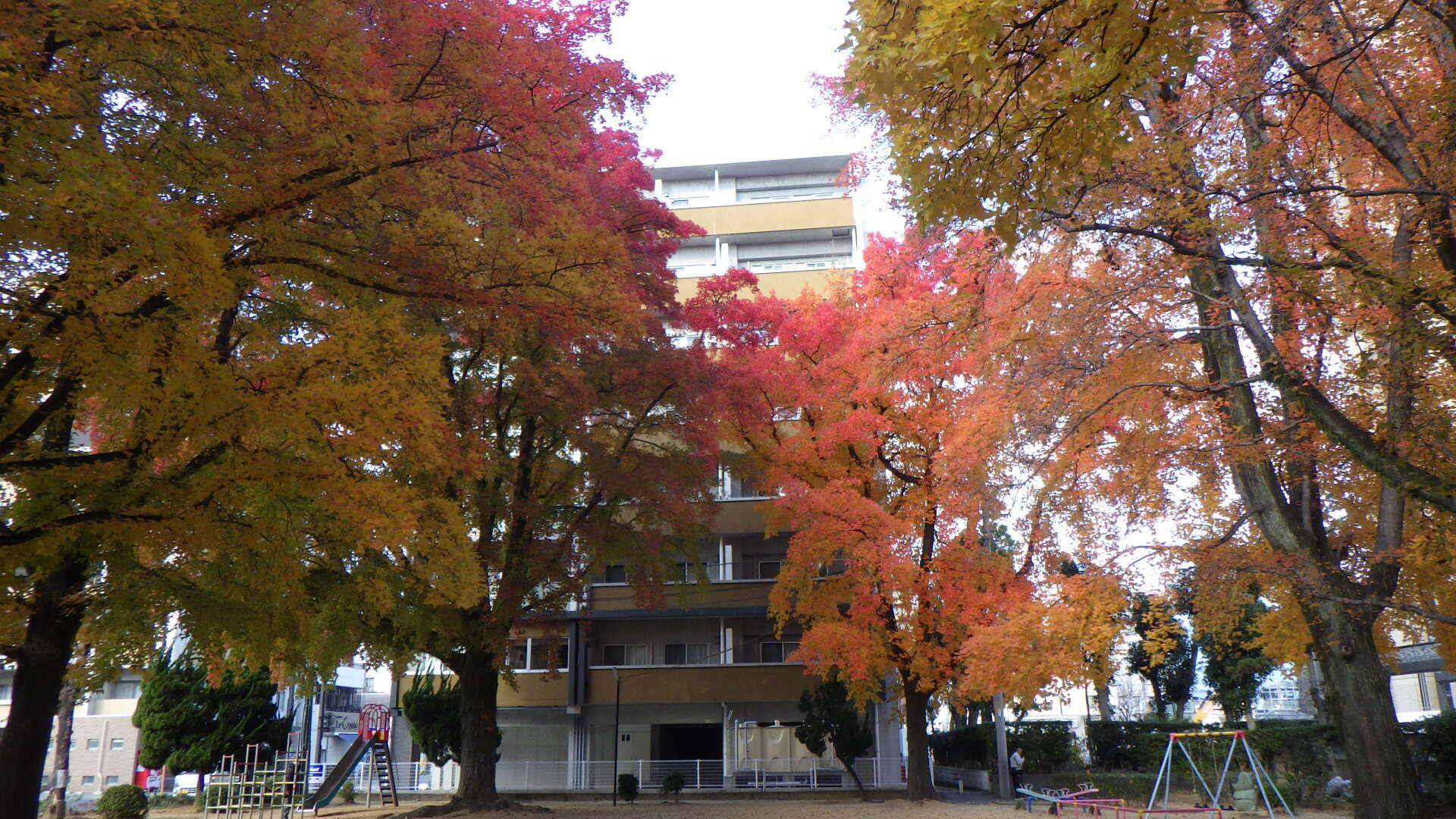 寒さも本格的になってまいりましたが、幸町公園ではタイワンフウの鮮やかな紅葉に訪れた人の目を楽しませています。