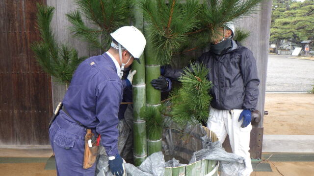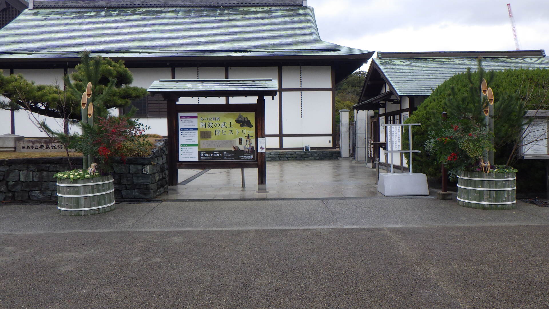 年の暮れを迎え、街を行き交う人々の足どりにもあわただしさが感じられるようになりましたが、2026年の新しい年を迎えるにあたって、公社社員一同で丹精を込めて徳島中央公園の鷲の門前と徳島城博物館前に門松を設けております。