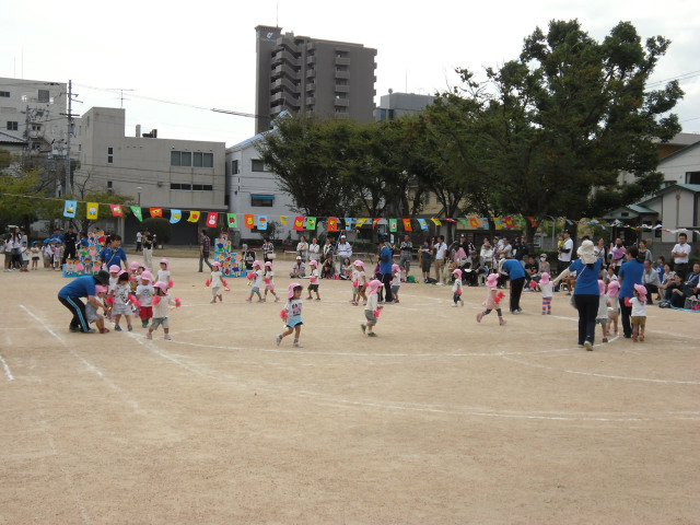 10月4日、秋晴れの心地よい気候にめぐまれて、各公園で保育園の運動会が開催されました。園児たちは、日頃の練習の成果を発揮し、汗だくになりながら会場内を駆け回っていました。競技に参加していない園児も保護者と一緒になって、精一杯のエールを送っていました。
