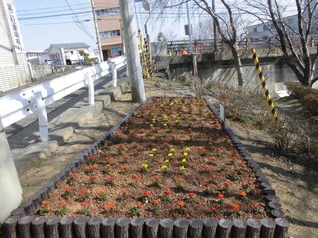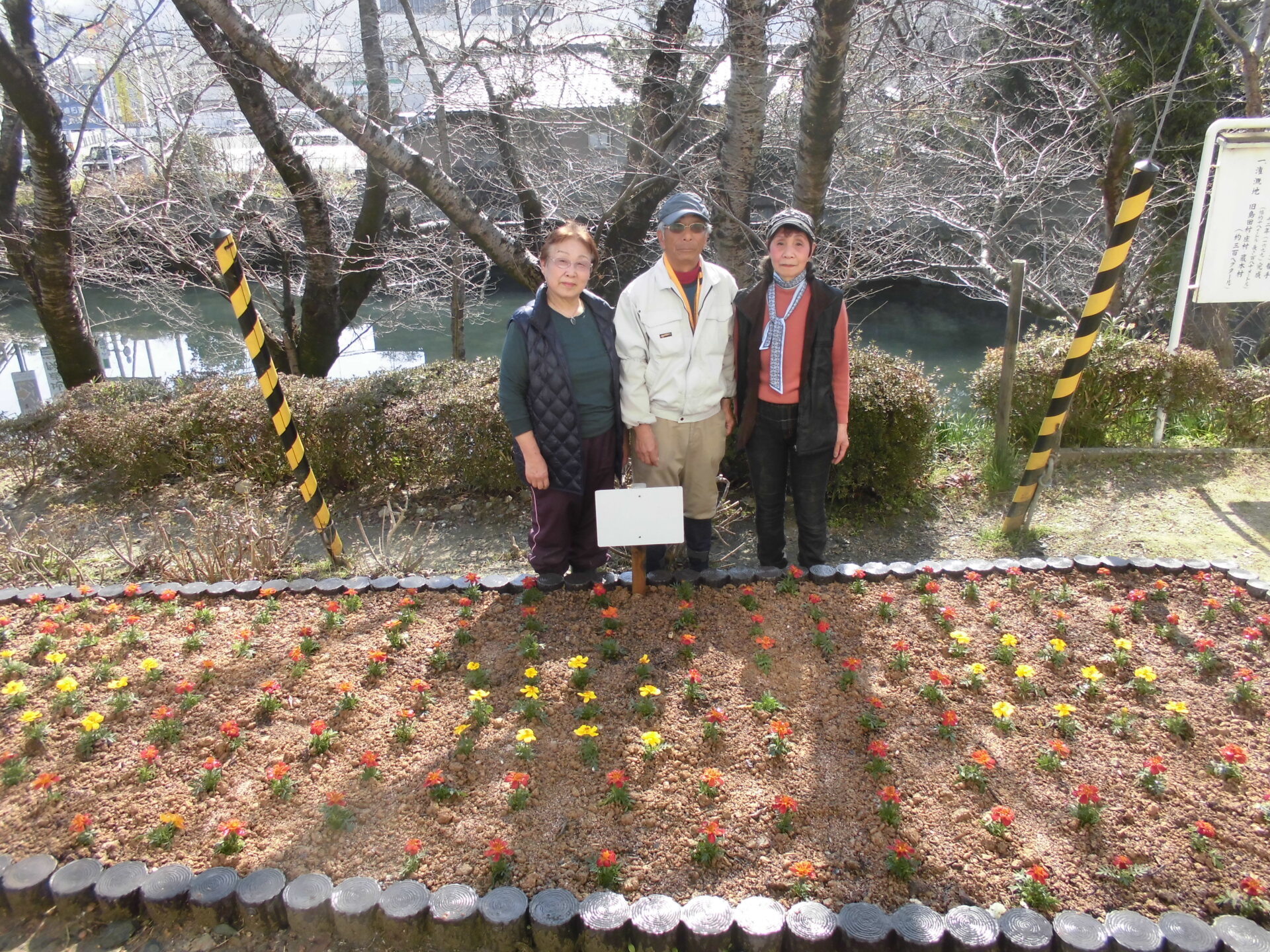 春光うららかな季節を迎え、春花壇に欠かせないマリーゴールドの花200本を、袋井公園を美しくする会の皆様と一緒に植え替えました。
