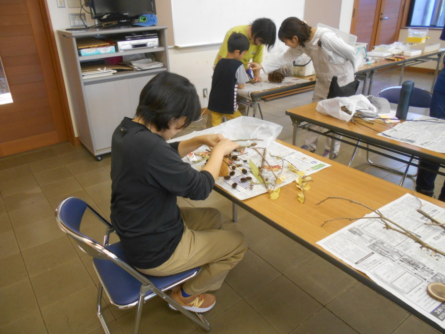 秋の里山を満喫した後は、集めた木の実を使った工作に、いろいろと工夫しながらチャレンジしてみましょう。