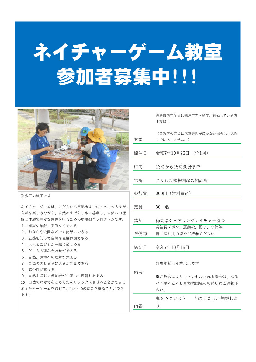 ネイチャーゲーム教室 の参加者を追加募集します。 |