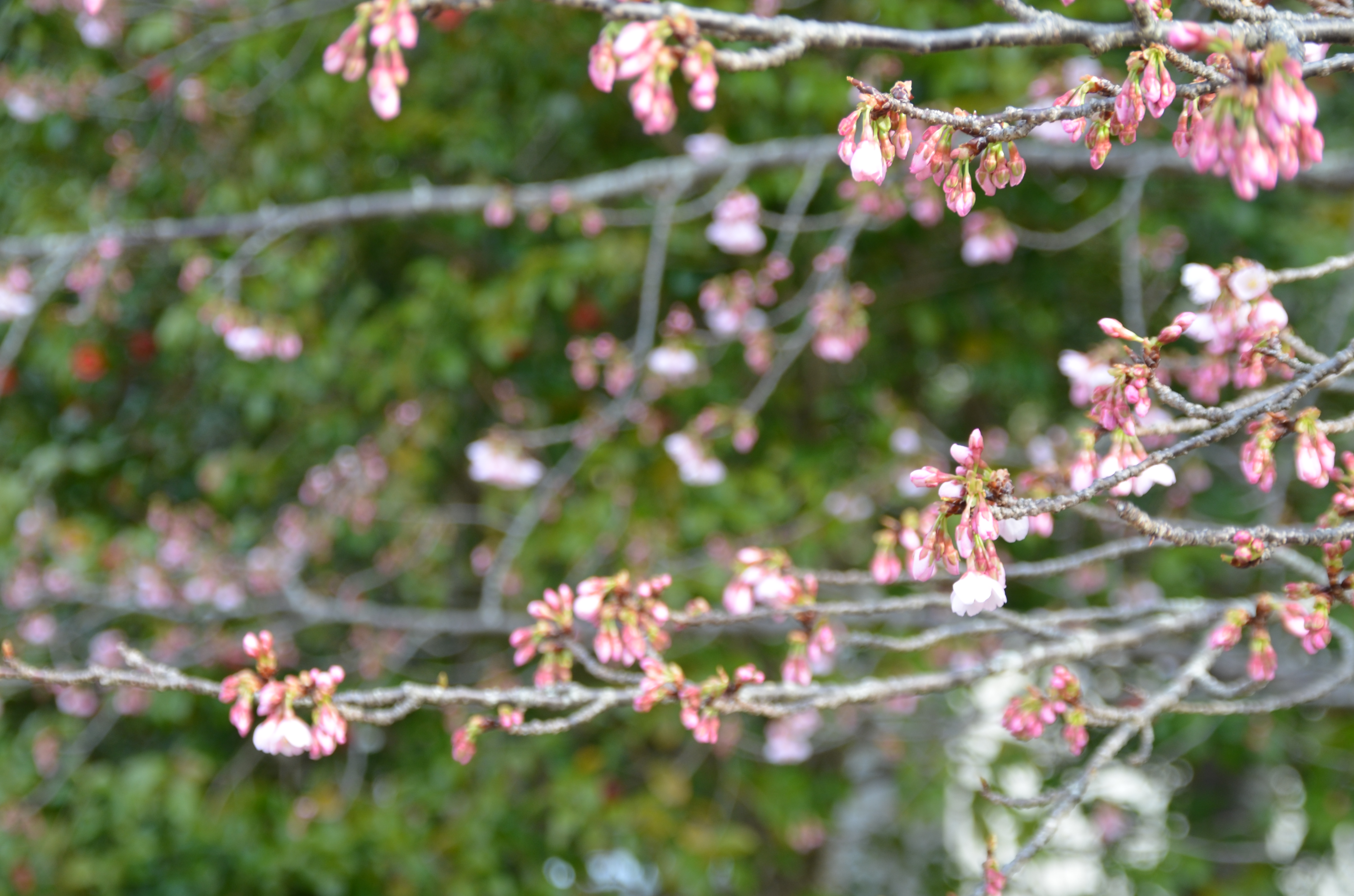 【市民の森】河津桜、開花。【芝生広場】カンヒザクラ、開花。カラミザクラ、開花。カンザクラ、開花。とくしま植物園にはいろいろな種類の桜が植栽されています。※上の写真は河津桜です。