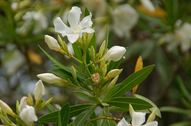 キョウチクトウの花言葉は、「注意」、「危険」、「用心」等です。