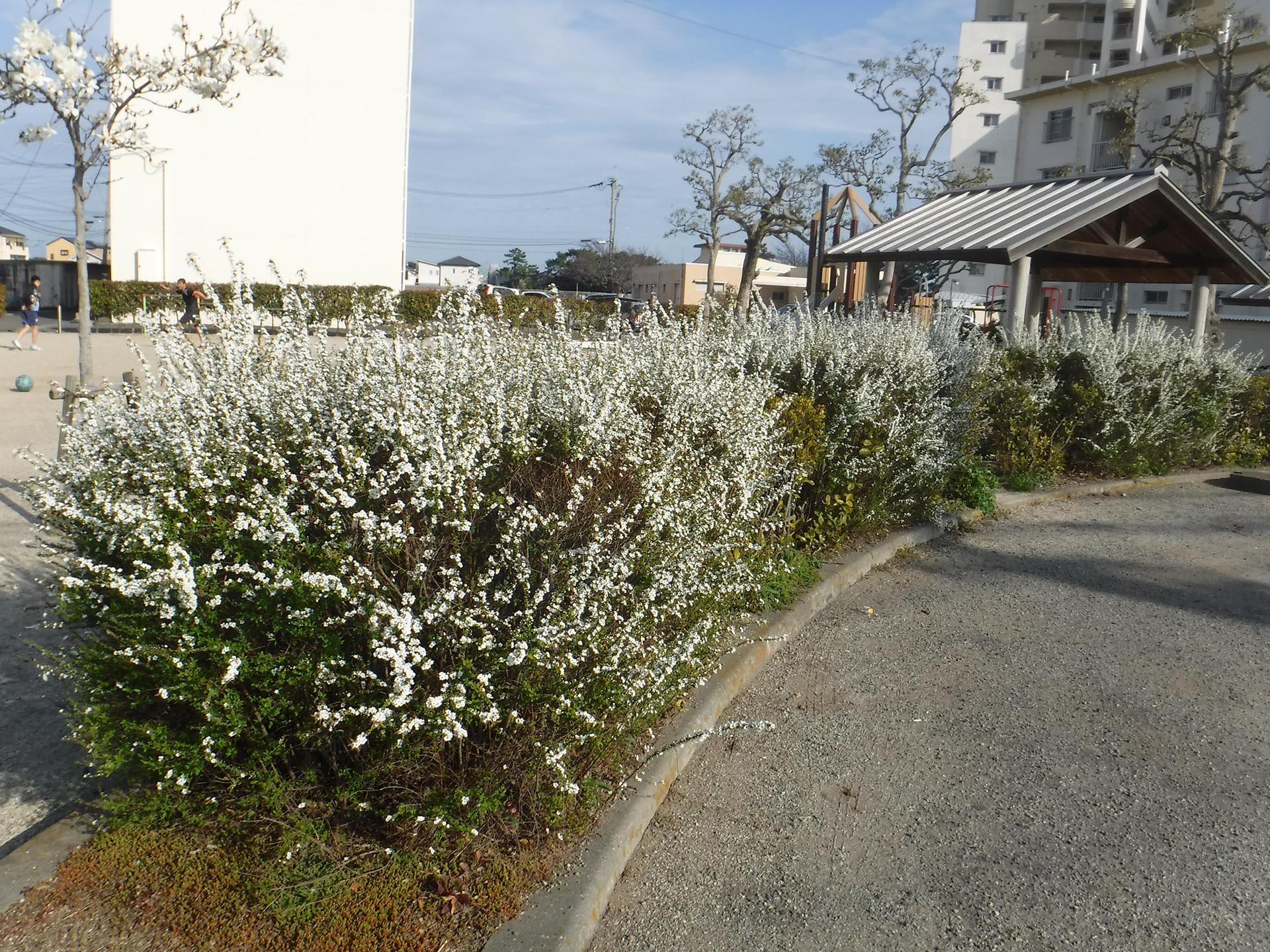 花冷えする季節でございますが、助任緑地、東富田公園、末広公園等でユキヤナギが花を咲かせ、春の訪れを告げてくれています。