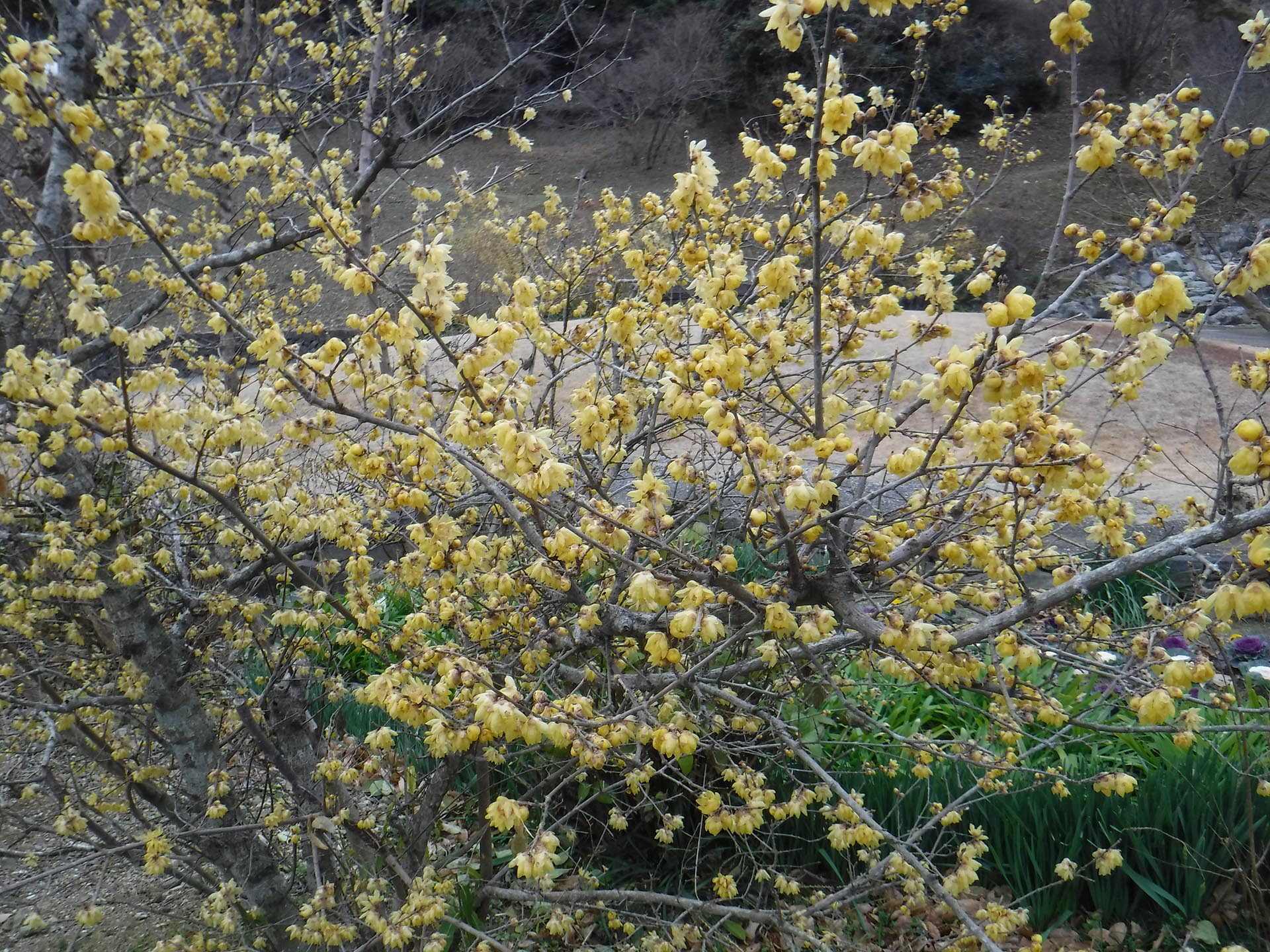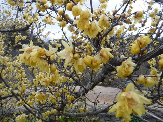 年が改まったせいか、厳しい寒さの中にも清々しさが感じられる日々が続いておりますが、寒い冬に甘い香りを放つロウバイの花が咲いています。ロウバイの花は、心にやさしく寄り添ってくれるような花やよい香りを放ち、ロウ細工のような黄色い花を咲かせます。