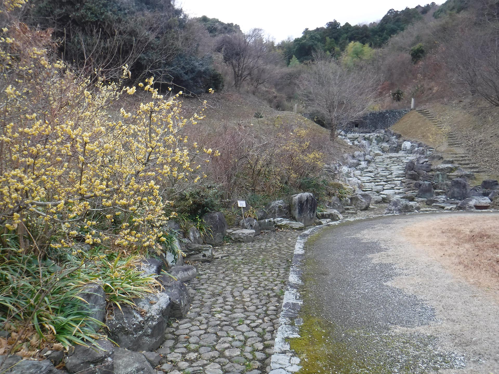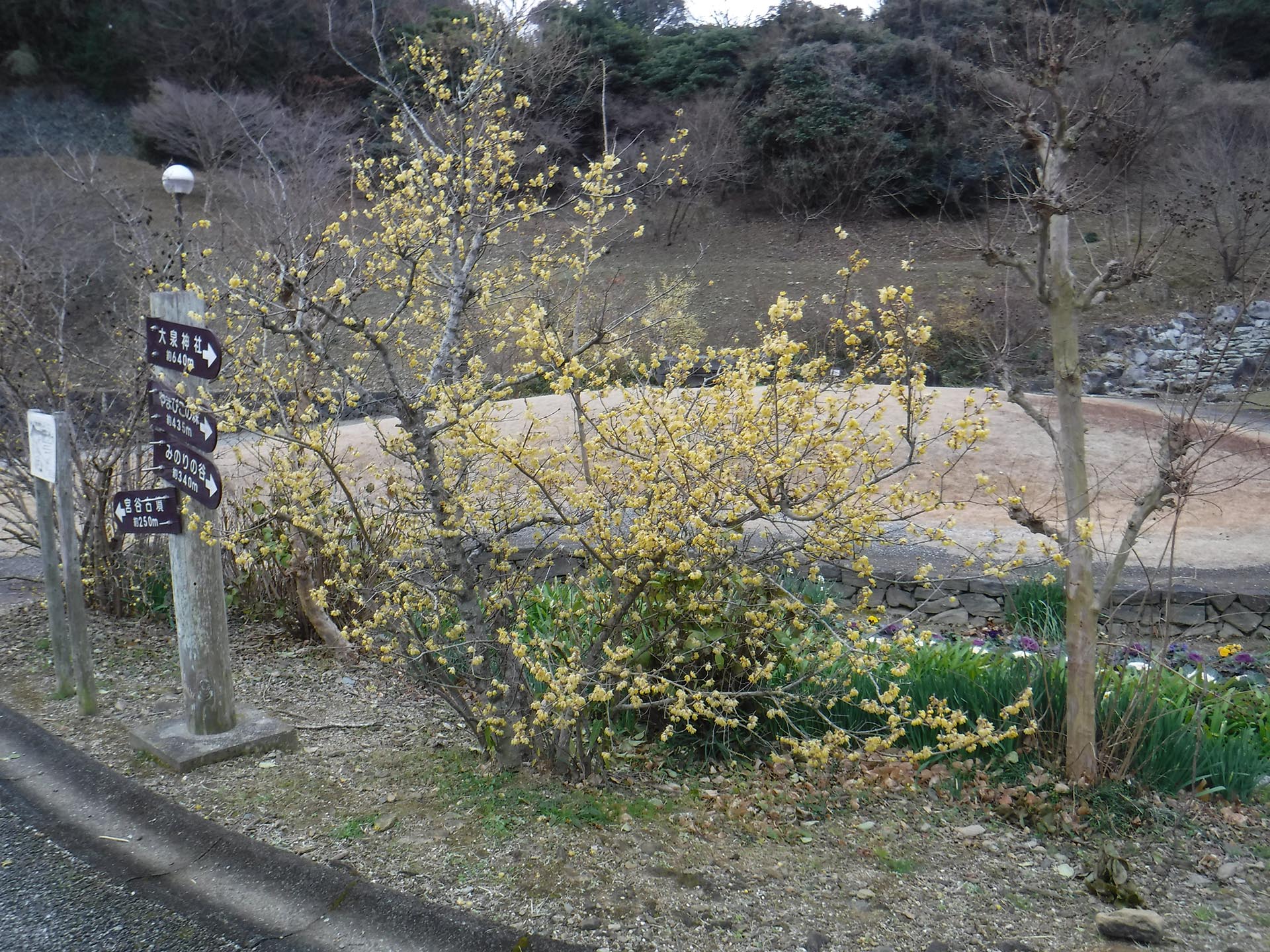 春を待ちわびつつ、阿波史跡公園で14本のロウバイの花が見頃を迎えています。