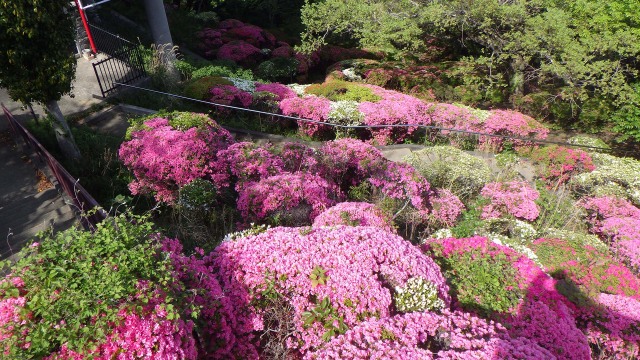 花々が咲き誇る季節となり、眉山公園山頂東法面でクルメツツジの花が見頃を迎えています。