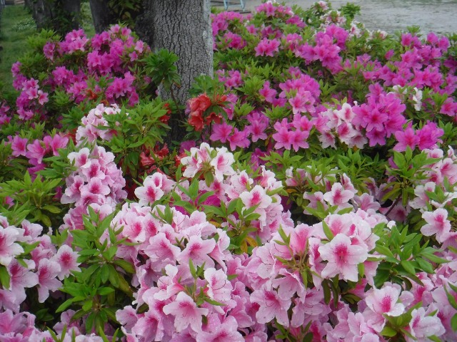花の盛りもあわただしく去りましたが、公園や街中でヒラドツツジの花が咲いています。ヒラドツツジの花は、10センチを超えるものもあり花の色はピンク、白、赤、紫、赤紫などで、淡い色から濃い色までさまざまな色合いが魅力です。