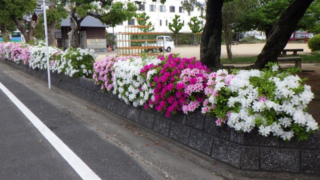 春の陽気にさそわれ、山城南公園、出来島公園、夷山緑地、助任緑地、一宮公園などでヒラドツツジの花が見頃を迎えています。