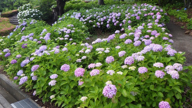 青葉生い茂る初夏の時期となりましたが、とくしま植物園、地蔵院池緑地、西部公園、末広公園、佐古駅東緑地などで、アジサイの花が見頃を迎えています。