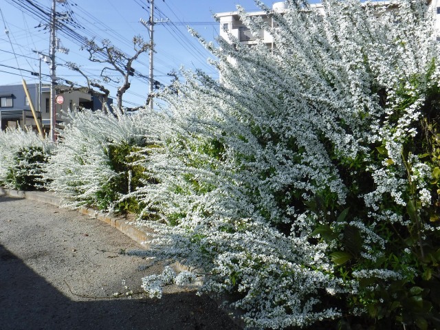 積もった雪のように見えるユキヤナギの花