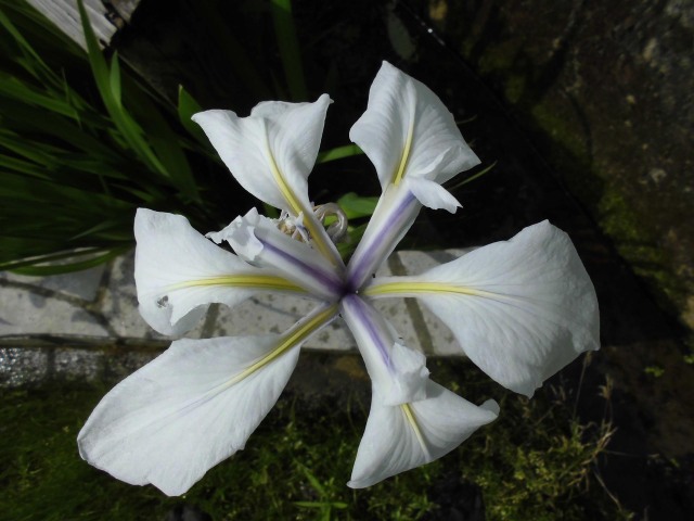 五月晴れの日が続き、今が一年でもっとも快適な季節になりました。水辺などの湿地帯で、カキツバタの花が咲いています。カキツバタの花は、ハナショウブの花よりひとまわり小さく、花弁のつけ根に白い目型の模様があるのが特徴です。