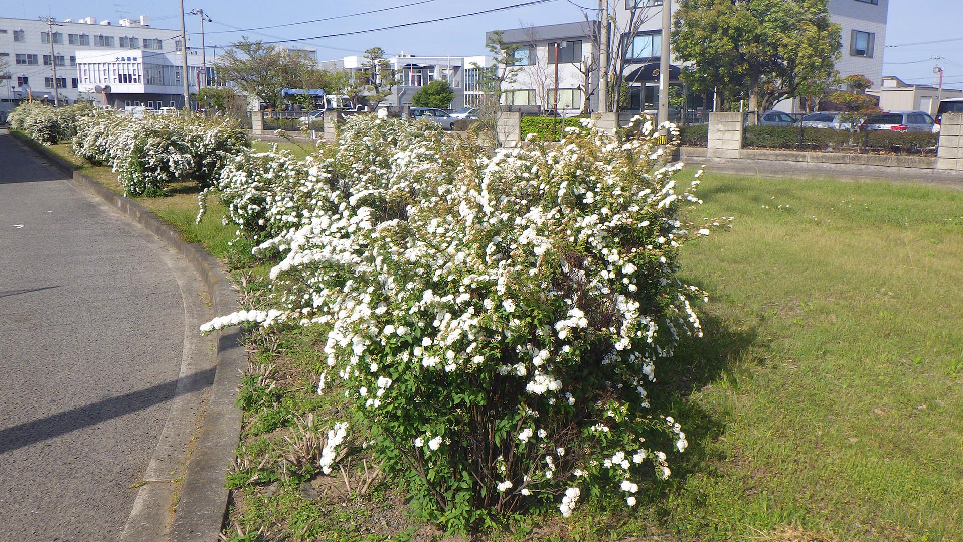 過ぎゆく春を惜しみつつ、ハイテクランド徳島南公園、ハイテクランド徳島中央公園、北川公園などでコデマリの花が咲き誇っています。