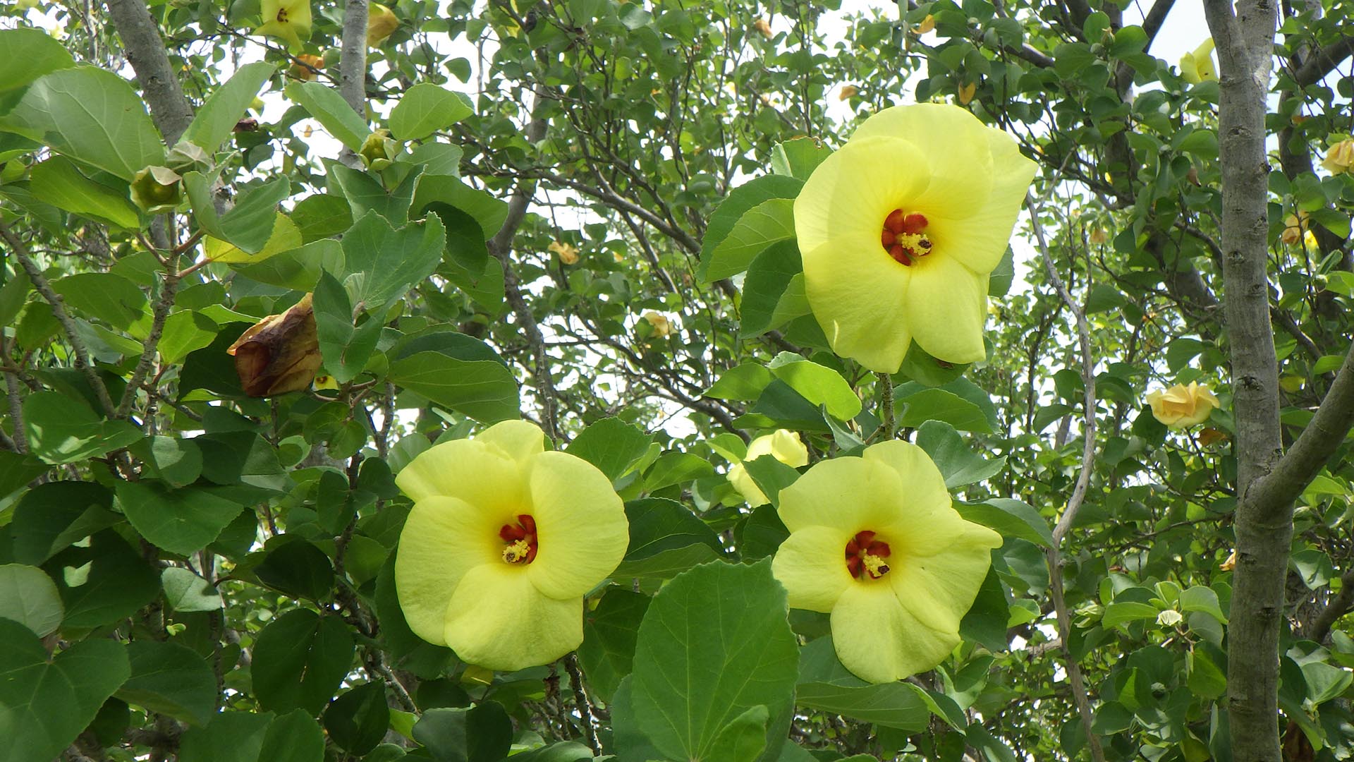 海山の恋しい季節となりましたが、ハイテクランド徳島南公園、とくしま植物園などで、ハマボウの爽やかなレモン色の花が見頃を迎えています。