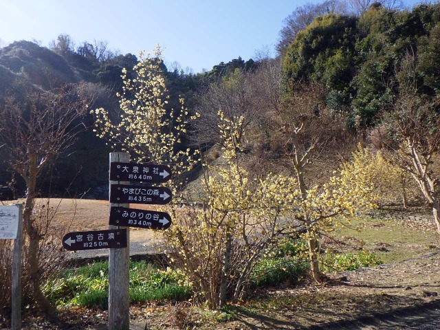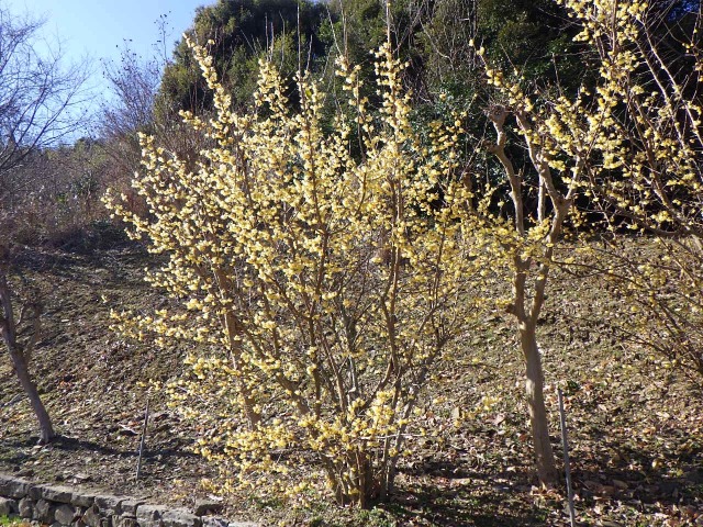 春を待ちわびつつ、阿波史跡公園では、ろうばいの花が見頃を迎えています。