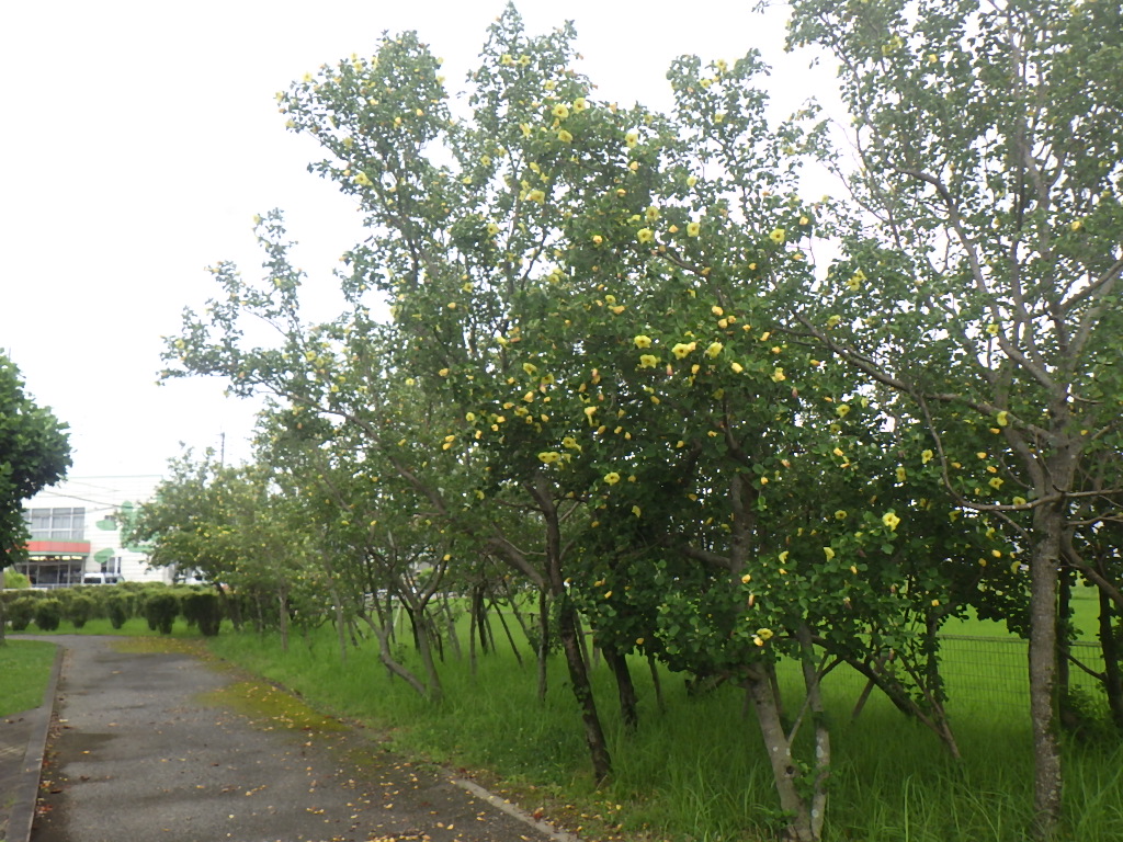 海山の恋しい季節となりましたが、ハイテクランド徳島南公園でハマボウの花が見頃を迎えています。