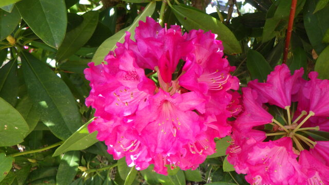 枝先に多数集まって咲くセイヨウシャクナゲの花