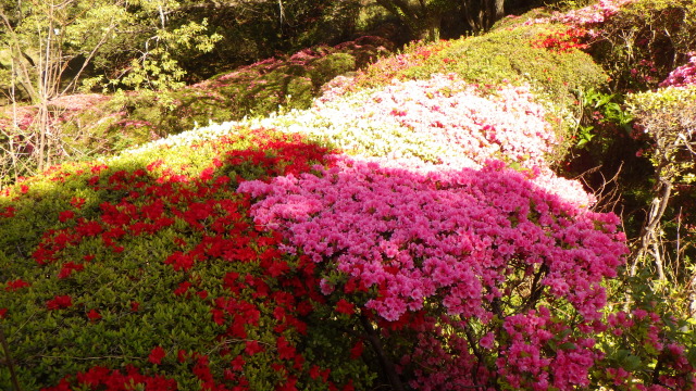 花の盛りもあわただしく去り、いよいよ春も深まってまいり公園樹や街路樹などでクルメツツジの花が咲いています。クルメツツジの花は赤、白、ピンク色の小ぶりの花で花付きがよく、他のツツジと比べて花色がとても鮮やかです。