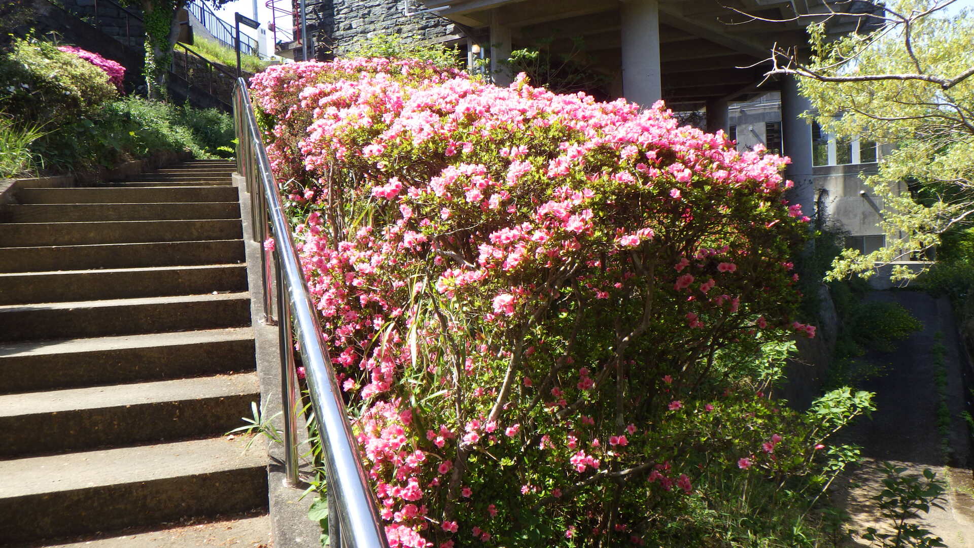 春光あまねく満ちわたる季節、眉山公園ではクルメツツジの花が見頃を迎えています。