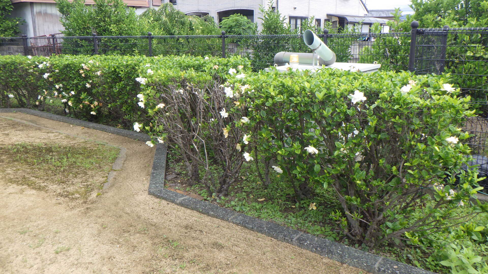 梅雨明けを心待ちにする毎日、不動3号公園、応神瑞川公園、とくしま植物園、末広公園等で、甘く濃厚な香りがするクチナシの花が見頃を迎えています。