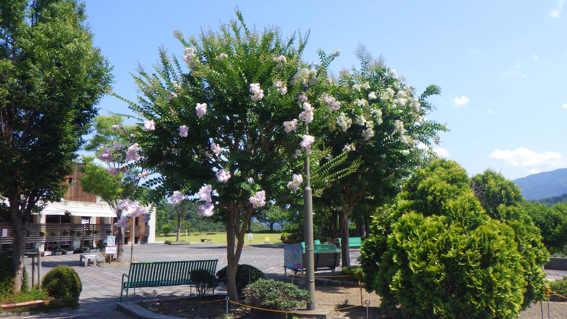 空の青がひときわ眩しい季節となりましたが、とくしま植物園、南矢三緑地、東富田公園などで、サルスベリの花が見頃を迎えています。