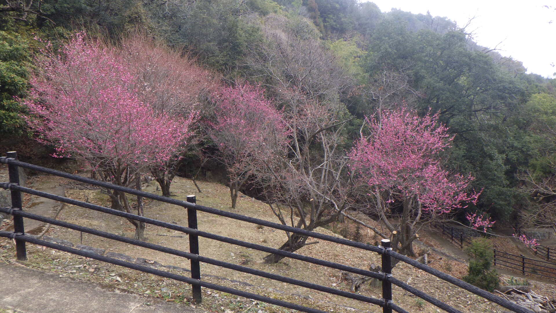 これから寒の戻りもございますが、阿波史跡公園みのりの谷では梅の花が見頃を迎えています。
