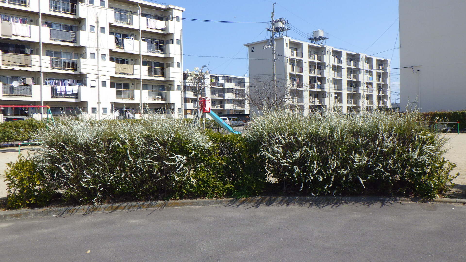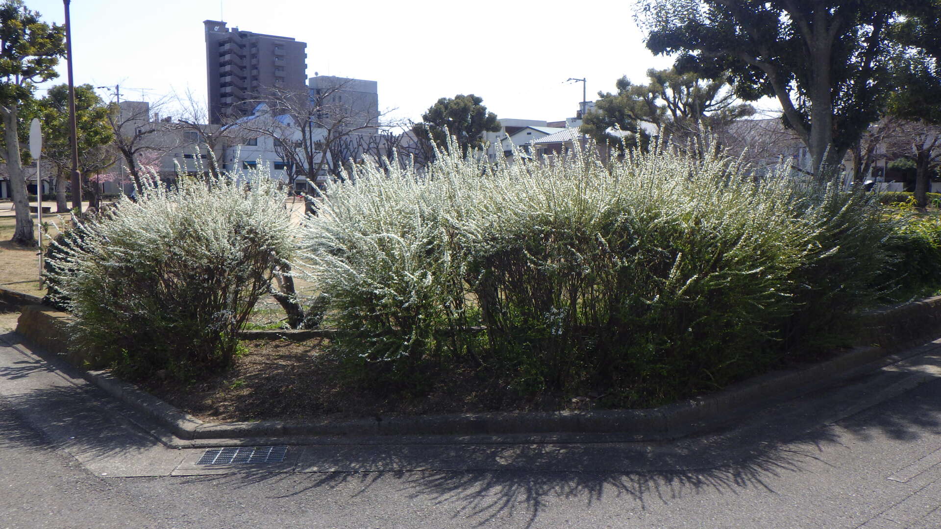 暖かい日差しを感じながら、末広公園、東富田公園、助任緑地などでユキヤナギの花が見頃を迎えています。