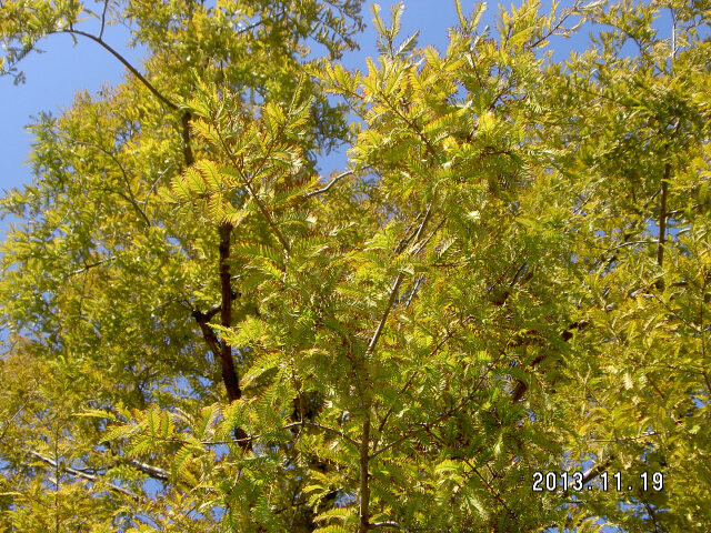 助任緑地にお越しの際には、メタセコイアの赤褐色の紅葉をご覧下さい。