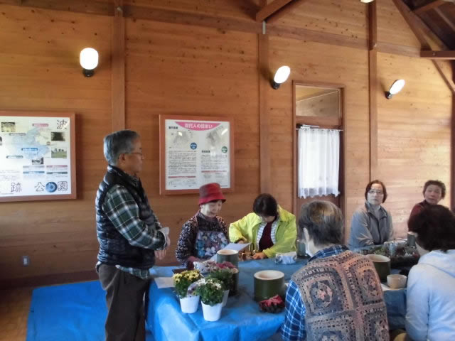 HOME お知らせ 春の寄せ植え教室終了 春の寄せ植え教室終了 2018/03/27 3月24日土曜日、阿波史跡公園にて、春の寄せ植え教室を開催いたしました。竹の鉢にオステオスペルマムと多肉植物の寄せ植えでした。また、花台に木の実に飾りつけをしていただき、個性あふれる作品を作成いただきました。 BACK HOME