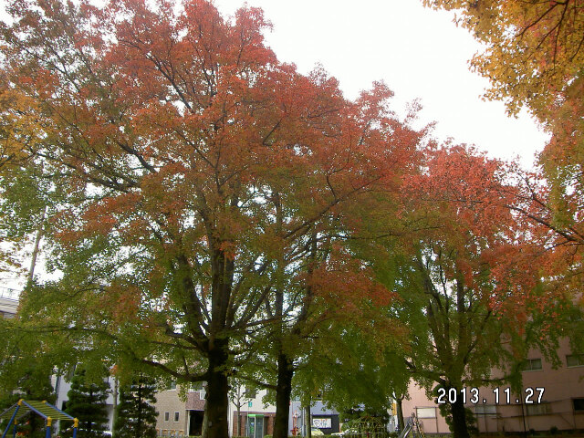 徳島市役所西側の幸町公園でも、タイワンフウの紅葉時期が訪れました。日によっては紅葉の役目を終わった葉が落ちて、紅いジュータンとなっています。この公園の紅葉は知る人ぞ知る見事なものです。一度ご覧になってはいかがでしょうか。