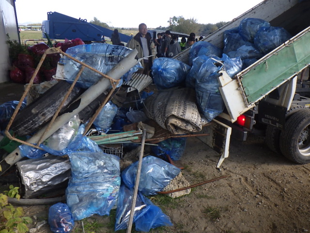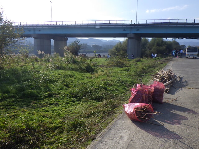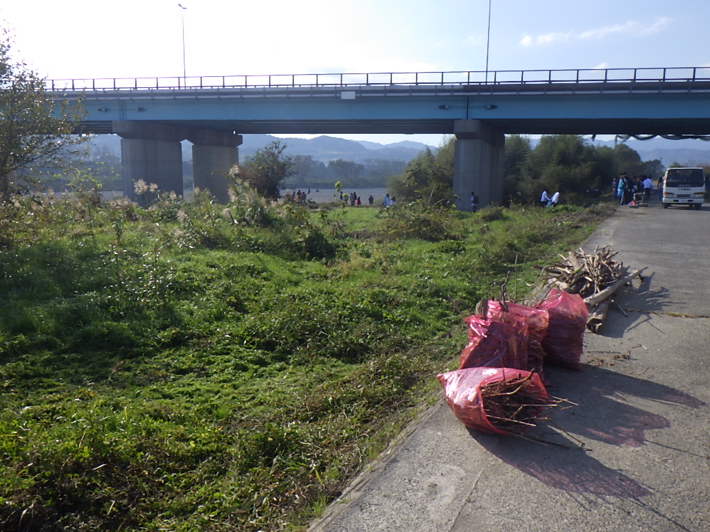 11月25日(日)、国府町南岩延の上鮎喰橋からJR徳島線の鮎喰川鉄橋までの約400メートルの清掃活動に参加してきました。清掃活動は、NPO法人環境コミュニテイみらい主催による上鮎喰橋下グラウンド周辺漂流・漂着ごみ回収清掃で、環境コミュニテイみらいの会員ら地元の子ども達や保護者、企業団体の方々等、約350人が清掃活動に参加されていました。清掃活動は、約3時間ぐらいで、流木や空き缶、瓶、ペットボトル、タイヤ等のごみを回収しました。