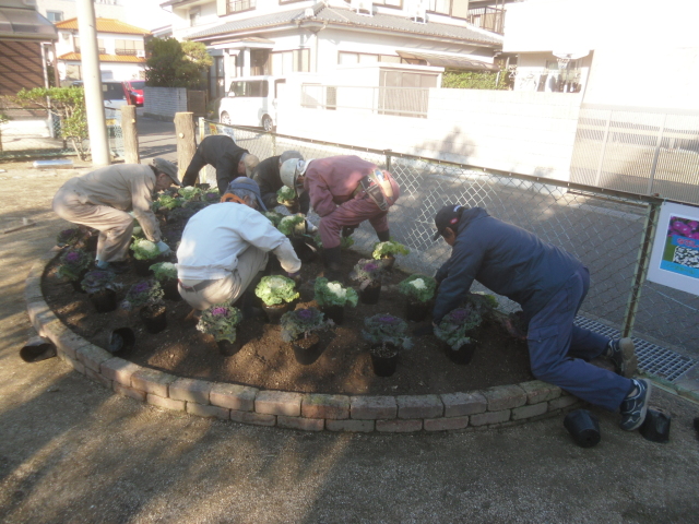 師走、何かと気ぜわしいこの頃、街中ではポインセチアが美しい紅色を見せる季節となりました。12月3日、庄町南公園において、光陽台町内会の皆様と一緒に冬に欠かせない紅白のハボタンを植栽しました。