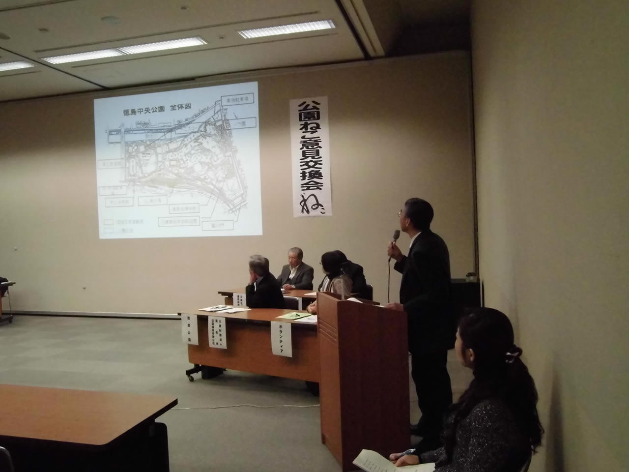 そのあと、ご来場の方々との意見交換会になり、活発な質疑応答がありました。遺棄されると、衰弱したりいろいろな要因で、殆ど死んでしまうようです。「公園に動物が住んでいることが不思議な状態であり、猫にとって公園にいることが幸せではなく、飼い主と居ることが幸せ。」 という言葉が印象に残りました。