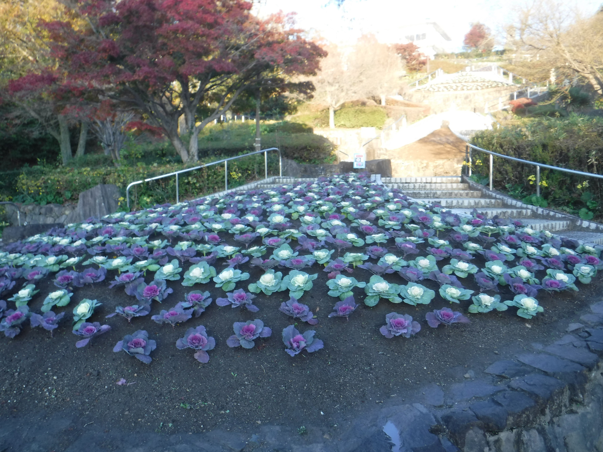 きらびやかなイルミネーションが街を彩っていますが、眉山公園の葉ボタンも大きく生長し花のカスケードいっぱいに彩ることを期待しています。
