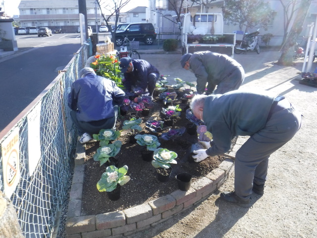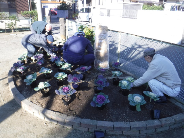 街に響くジングルベルが今年もあとわずかだよと歌っているように聴こえる季節となり、12月2日、庄町南公園において光陽台町内会の皆様と一緒に冬の花壇を彩る紅白の葉ボタンを植栽しました。葉ボタンは、耐寒性に優れ冬の公園を彩るほか、門松の添え物にも利用されています。